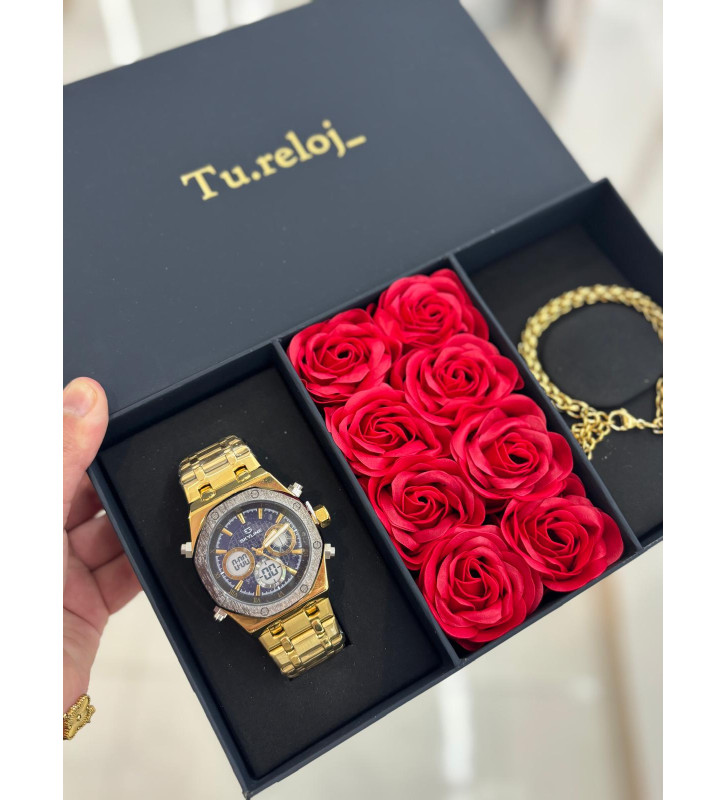 PACK DE RELOJ CON CAJA DE FLORES +RELOJ DE ACERO INOXIDABLERELOJ DIGITAL