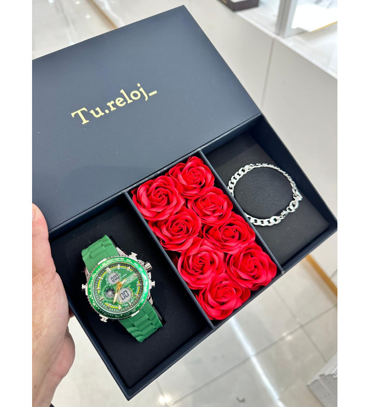 PACK DE RELOJ CON CAJA DE FLORES +RELOJ DE ACERO INOXIDABLERELOJ DIGITAL