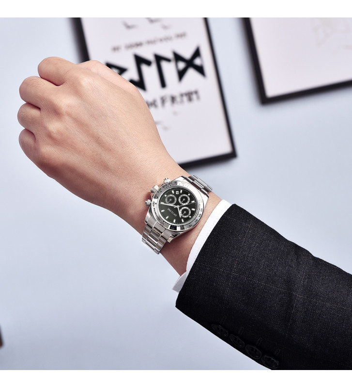 CONJUNTO DE RELOJ HOMBRE CON PULSERA CORREA DE ACERO INOXIDABLE