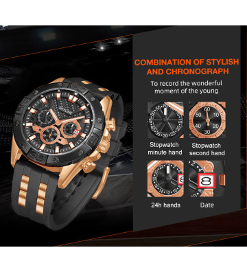 ●Funciones de segundos, minutos y hora cronografo. Digital: luz, cronómetro, calendario, alarma.