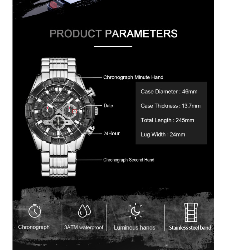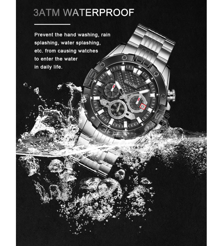● Fabricado con acero inoxidable, impermeabilidad 3ATM-Resistente al agua .