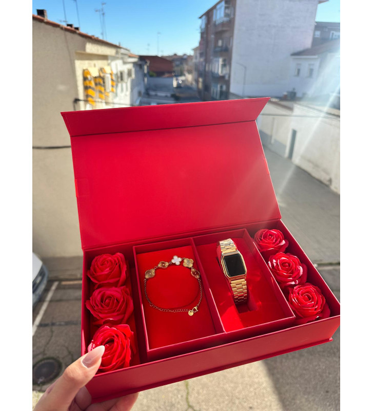 PACK DE RELOJ CON CAJA DE FLORES +RELOJ DE ACERO INOXIDABLERELOJ DIGITAL