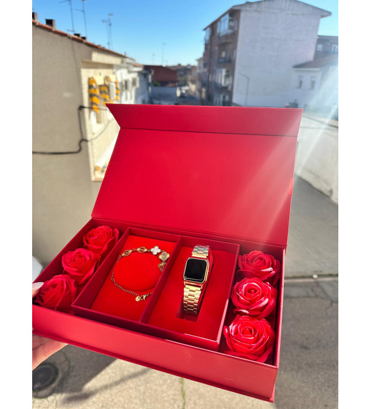 PACK DE RELOJ CON CAJA DE FLORES +RELOJ DE ACERO INOXIDABLE RELOJ INCLUYE PULSERA
