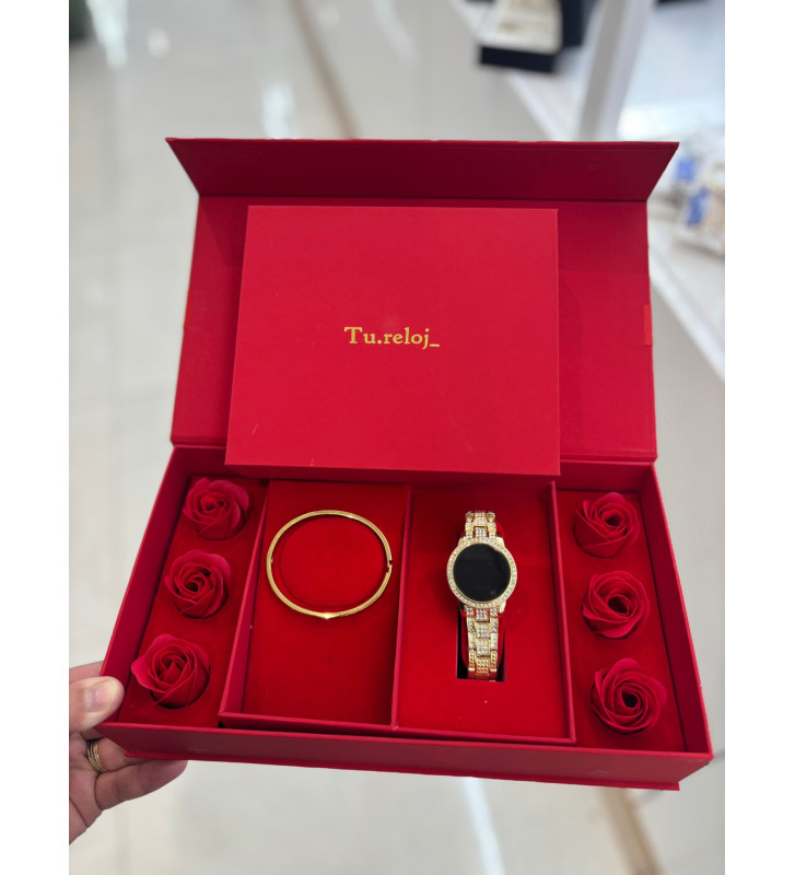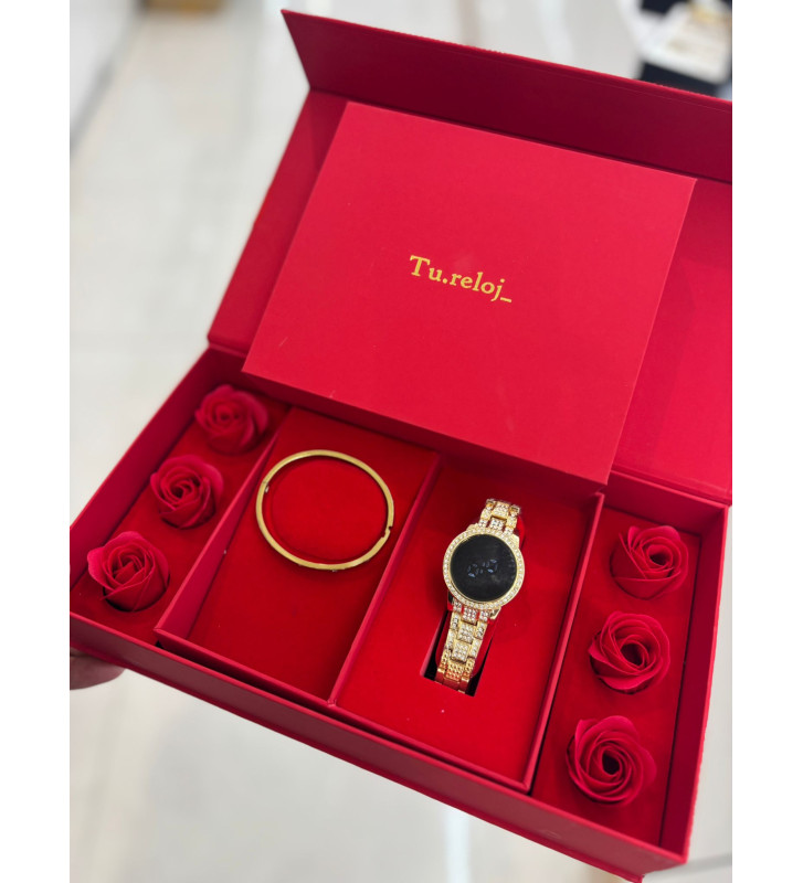 PACK DE RELOJ CON CAJA DE FLORES +RELOJ DE ACERO INOXIDABLERELOJ DIGITAL