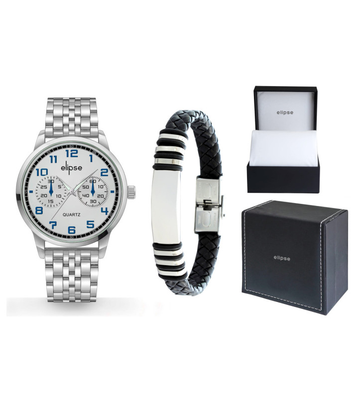 CONJUNTO DE RELOJ HOMBRE CON PULSERA CORREA DE ACERO INOXIDABLE